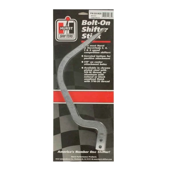 Hurst bolt-on shifter sticks are ideal for use where a particular height or offset is required. These shifter sticks are constructed from high strength steel and are stamped with the Hurst name. All sticks incorporate a 3/8 – 16 thread size.