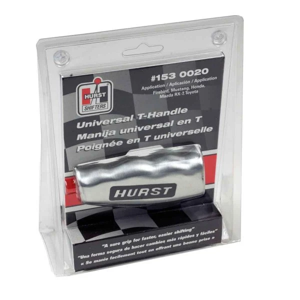 The Hurst Brushed T-Handle is made of die cast aluminum. Solid body and bold HURST identification adds a stylish touch to your race shifter. T-Handle comes complete with adapters and jam nuts to fit SAE 3/8 and 1/2 in. threads. Also fits 10 mm, 12 mm and 16 mm threads. Incredibly simple to install. As you grasp this T-Handle firmly in the palm of your hands, you will automatically gain a sense of satisfaction.