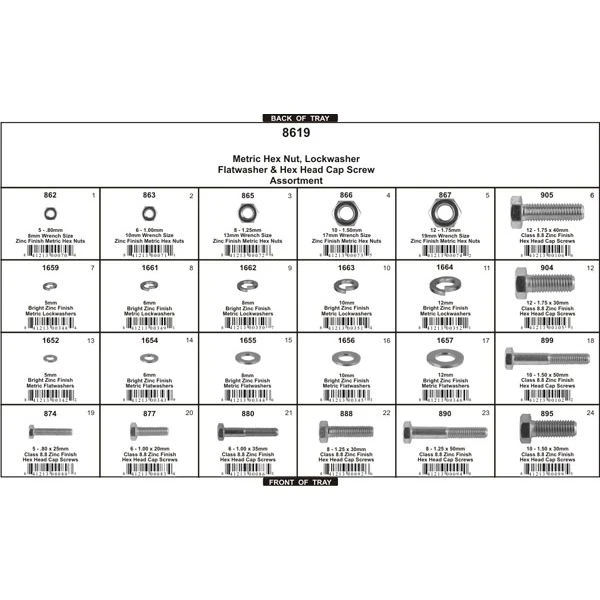 Don’t let your progress stall or stop because you don’t have the small fasteners that you need to get the job done right. Eastwood’s shop and restoration fastener program ensures you have everything you need to finish your job. These are high quality automotive products, not department store fasteners. New fasteners make a project look great and shows that you pay attention to the details, plus they ensure safety, reliability and peace of mind. Kit includes 698 Metric 8.8 Cap Screws, Washers and Nuts. M5 thru M12