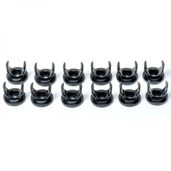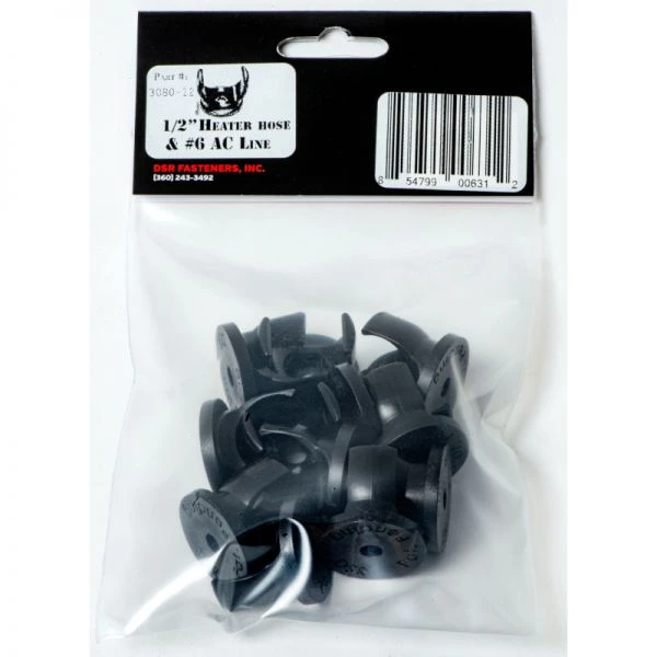 NotcHead soft line clamps are quick, safe, and professional. They allow for a simple snap-in, snap-out installation of your heater hose, A/C lines, and more—keeping the lines off your painted surfaces and enabling you to run parallel lines. The soft line clamps are crafted from heat-resistant copolymer acetal and feature a center set screw design; once your lines are installed, the set screw is completely hidden from view, creating an expertly clean appearance. They’re available in several hose diameters, as well as in a choice of quantities—6 with fasteners or 12 without to refill your Builder kit.
