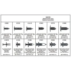 Don’t let your progress stall or stop because you don’t have the small fasteners that you need to get the job done right. Eastwood’s shop and restoration fastener program ensures you have everything you need to finish your job. These are high quality automotive products, not department store fasteners. New fasteners make a project look great and shows that you pay attention to the details, plus they ensure safety, reliability and peace of mind. Kit includes 192 Black Nylon Push Retainers in 12 different configurations.